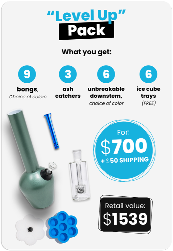 For only $700 + $50 Shipping, you can pick any 9 Bongs, 3 Ash Catchers, 6 Unbreakable Downstems, and 6 Ice Cube trays.